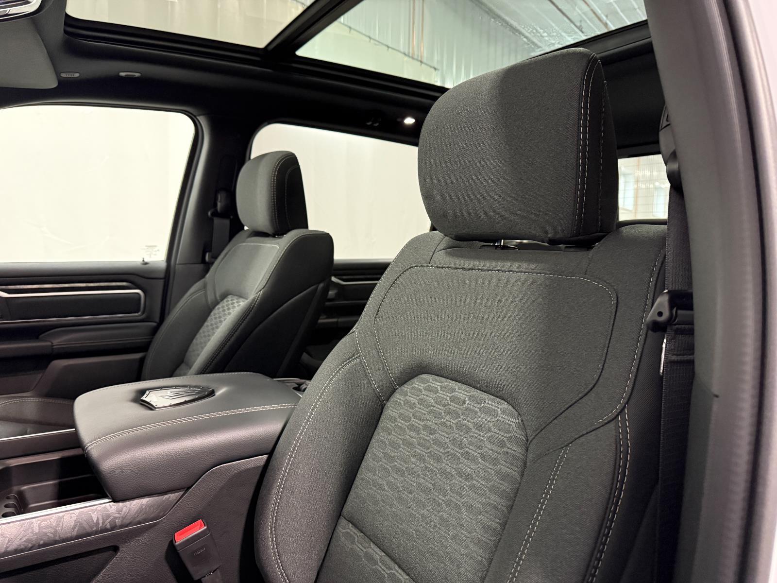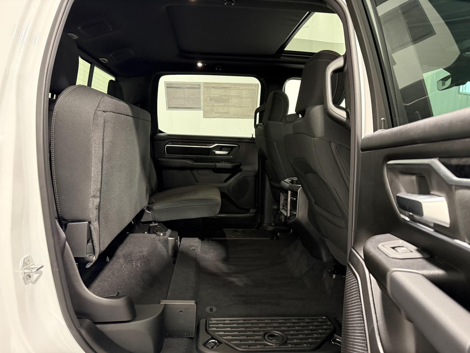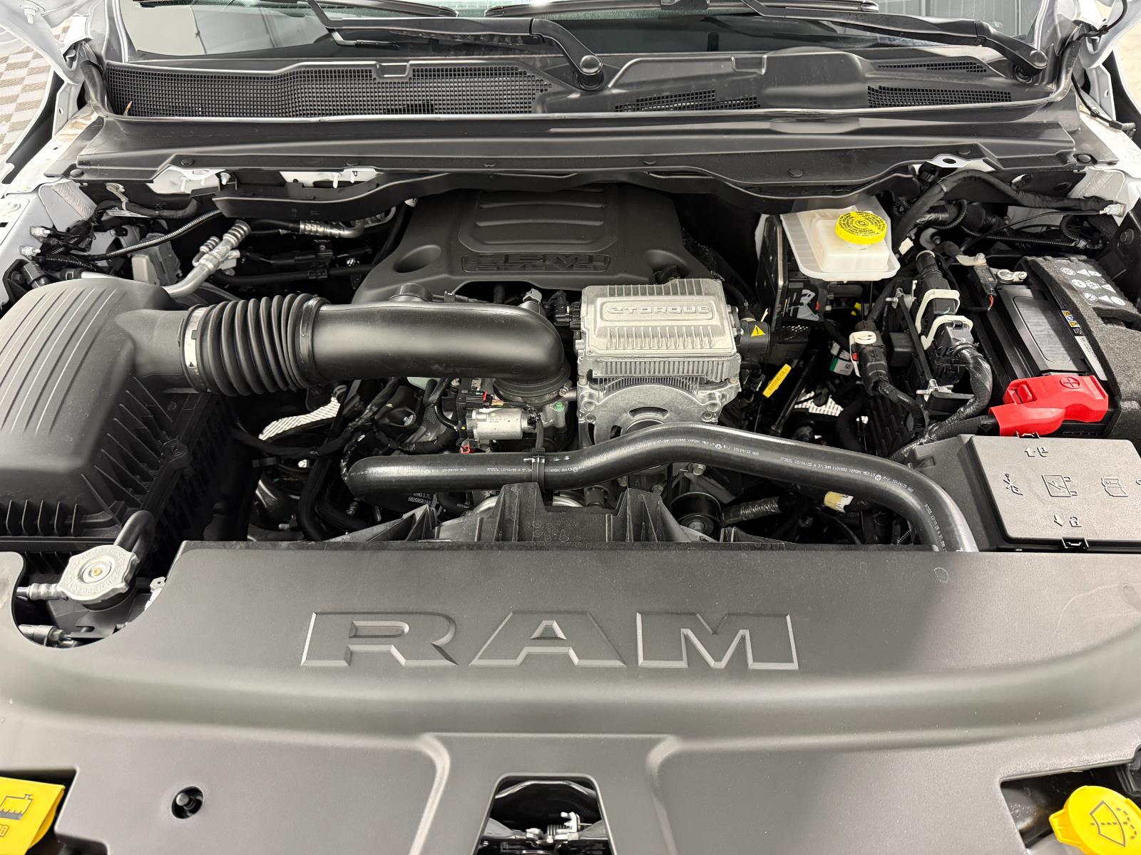 ENGINE: 5.7L V8 HEMI MDS VVT ETORQUE, TRANSMISSION: 8-SPEED AUTOMATIC (8HP75), QUICK ORDER PACKAGE 27Z BIG HORN, 3.92 REAR AXLE RATIO, WHEELS: 20" X 9.0" ALUMINUM PAINTED CLAD, TIRES: 275/55R20 OWL ALL SEASON, BRIGHT WHITE CLEARCOAT, BLACK, DELUXE CLOTH BUCKET SEATS, GVWR: 7,100 LBS, BIG HORN LEVEL 2 EQUIPMENT GROUP, PROTECTION GROUP, NIGHT EDITION, ANTI-SPIN DIFFERENTIAL REAR AXLE, ENGINE BLOCK HEATER, 33 GALLON FUEL TANK, DUAL-PANE PANORAMIC SUNROOF, FRONT LICENSE PLATE BRACKET, REAR WHEELHOUSE LINERS, RADIO: UCONNECT 5 NAV W/12.0" DISPLAY, 9 AMPLIFIED SPEAKERS W/SUBWOOFER, CLUSTER 12" TFT COLOR DISPLAY, REAR UNDERSEAT COMPARTMENT STORAGE