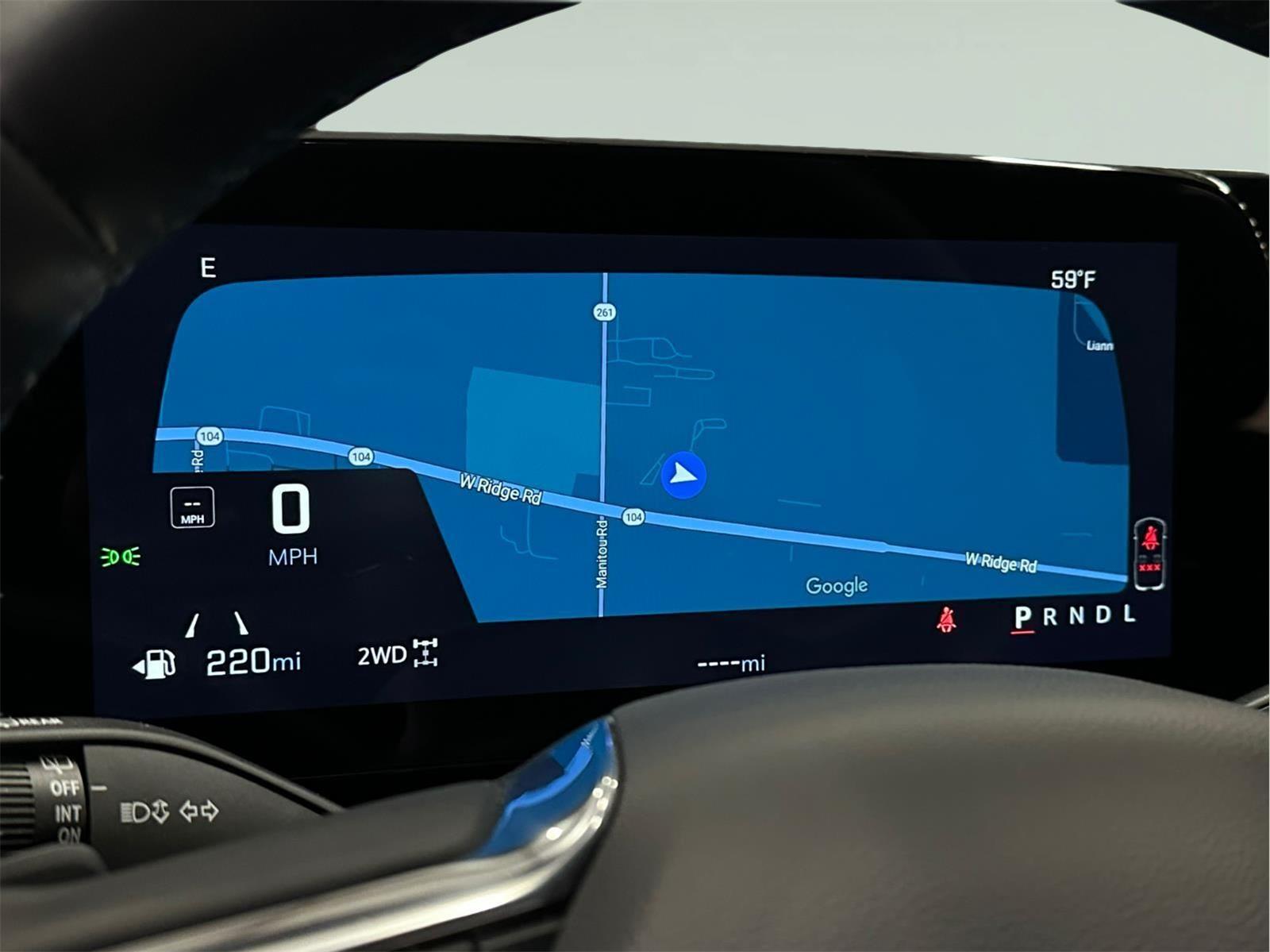 - The vehicle is equipped with a camera that displays an image of the area behind the vehicle on an interior display.